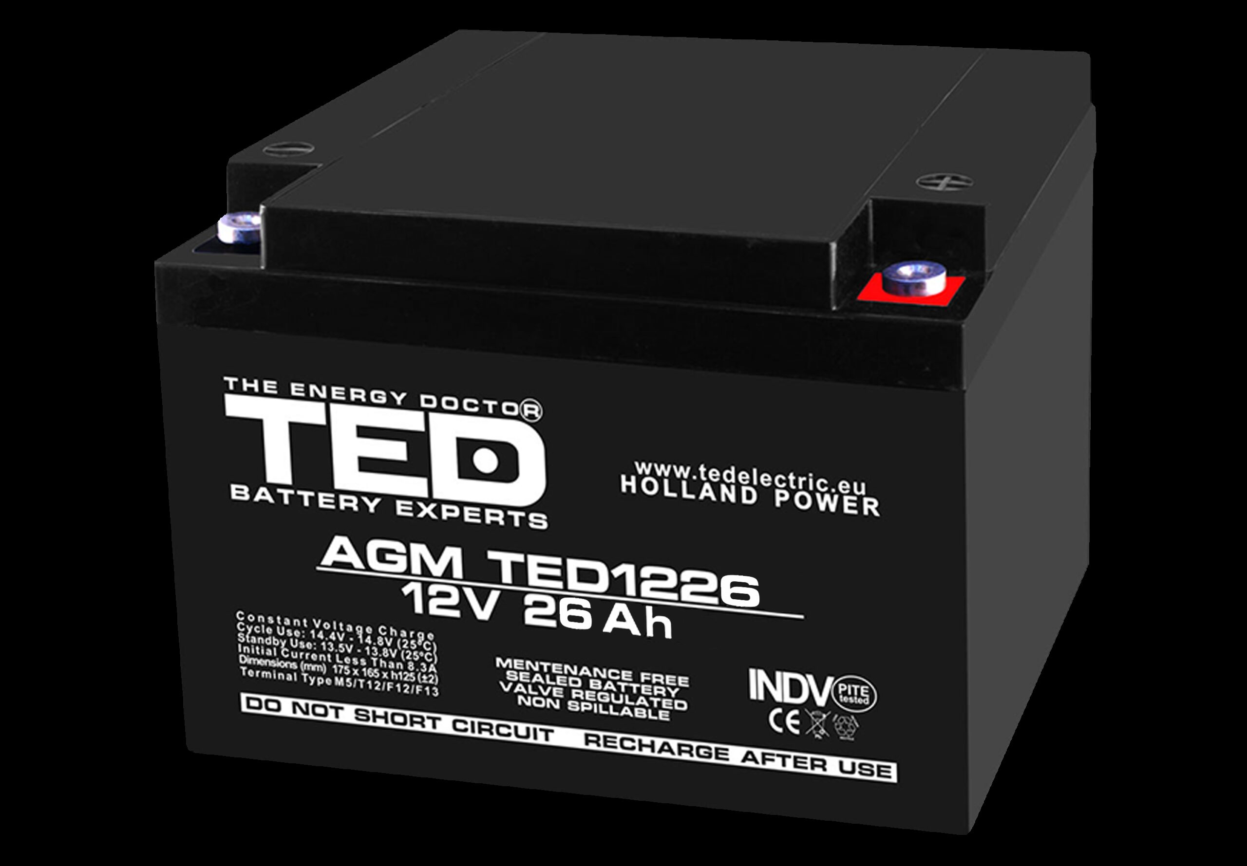 Acumulator AGM VRLA 12V 26Ah plumb acid 165x175x125 mm M5 terminal TED Battery Expert Holland
