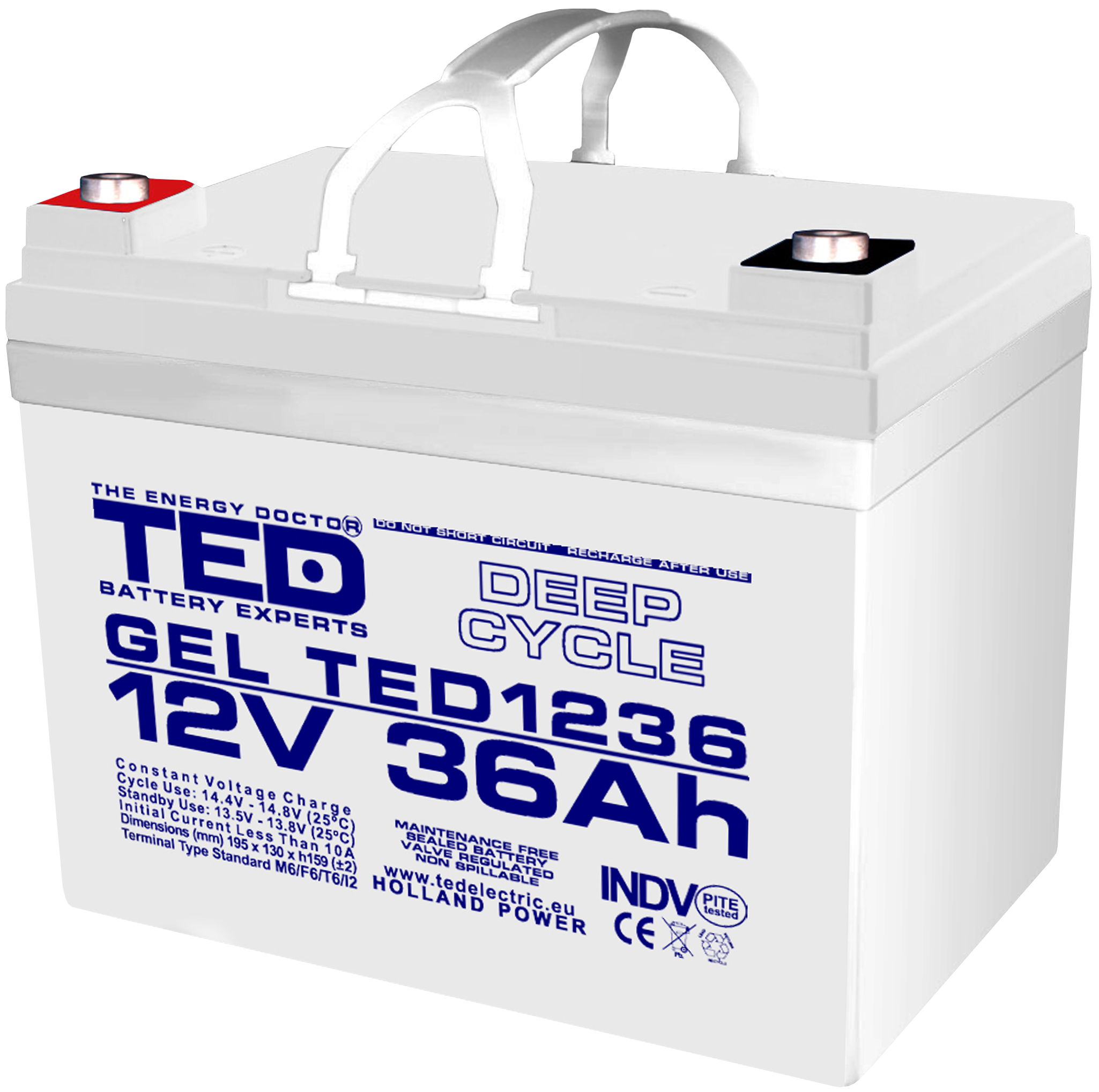 Acumulator AGM VRLA 12V 36Ah Plumb GEL Deep Cycle 195x128x155 mm M6 terminal TED Battery Expert Holland GEL Battery GEL TED1236M5 12V 36Ah M6 terminal TED003386.