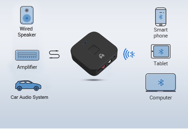 Adaptor convertor audio bluetooth NFC + DIGITAL TOSLINK la analog 2x RCA + Jack 3.5 mm