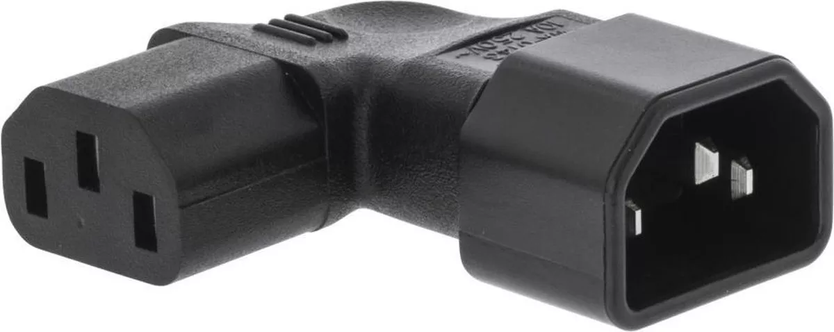 Adaptor de putere pentru alimentare cu unghi drept de la IEC-320-C14 la IEC-320-C13 la unghi stâng. Acest adaptor vă permite să conectați un cablu de alimentare la dispozitive care au mai puțin spațiu pe spate pentru conexiuni.