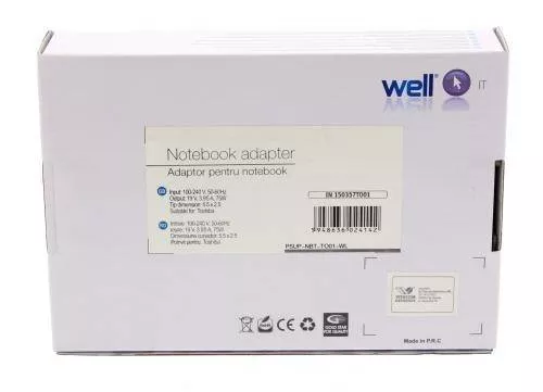 Alimentator pentru laptop Toshiba 19V 3.42A 65W mufa 5.5x2.5 mm Well Prețul inițial a fost: 131,25 lei.Prețul curent este: 105,00 lei.