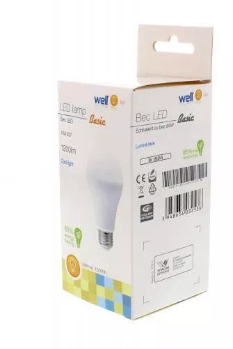 Bec cu LED A65 E27 15W 1200lm 230V lumina naturala 4000K Basic Well