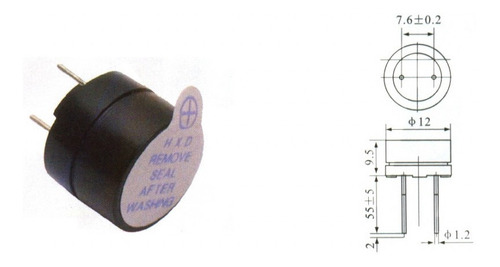 Buzzer 9V 12×9.5mm/7.6mm cablaj.