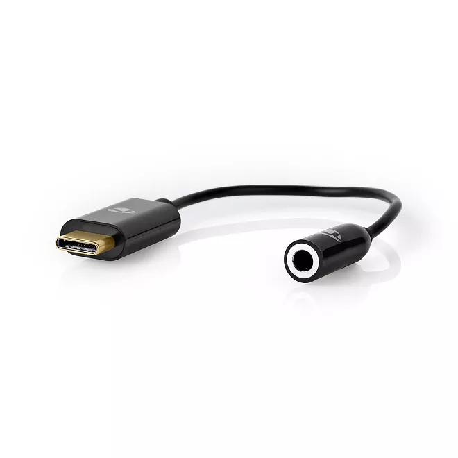 Cablu adaptor USB TYPE C tata – Jack 3.5 mm mama 15cm cupru OFC aurit negru Nedis.