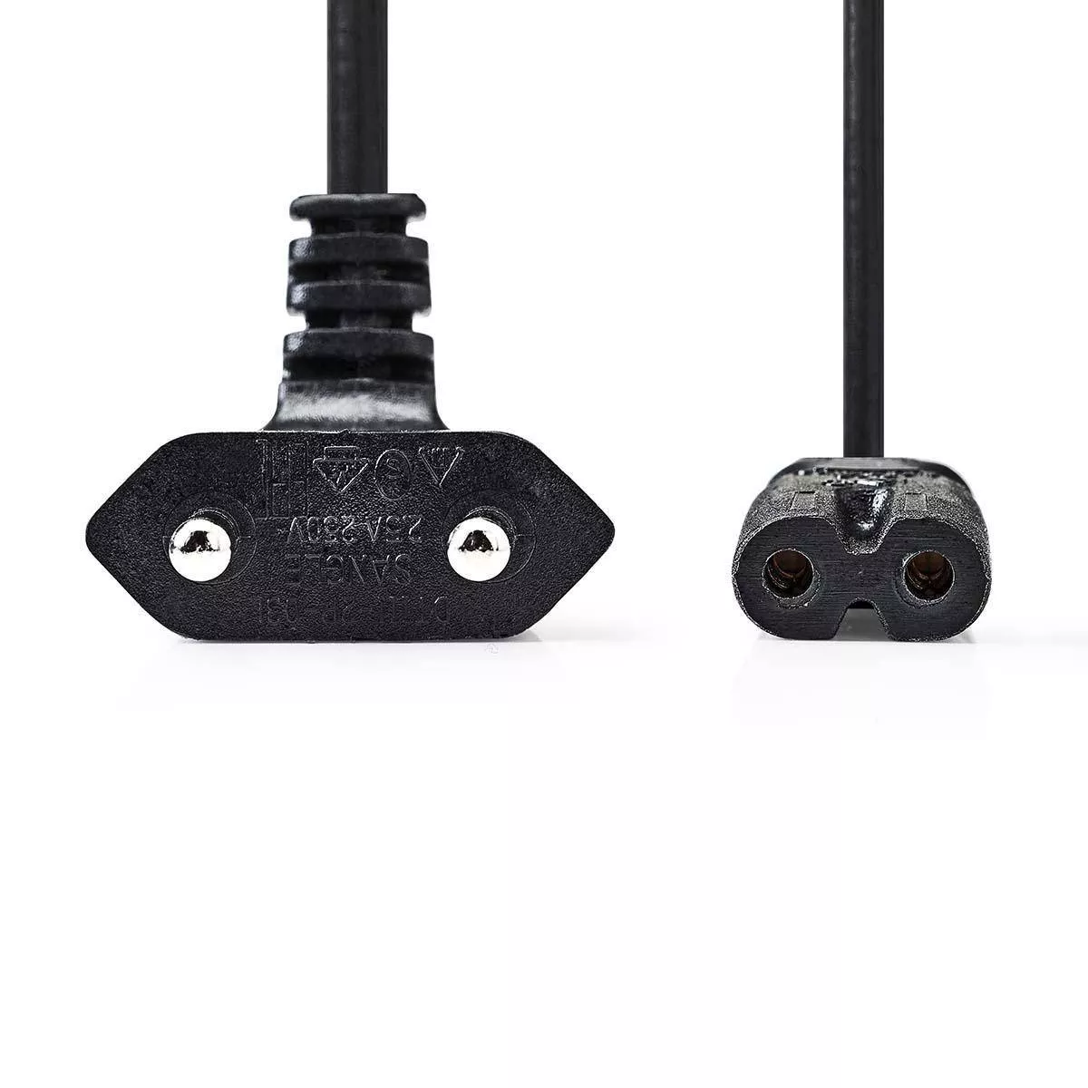 Cablu alimentare Euro cotit tata – 2 pini IEC-320-C7 2m negru Nedis.