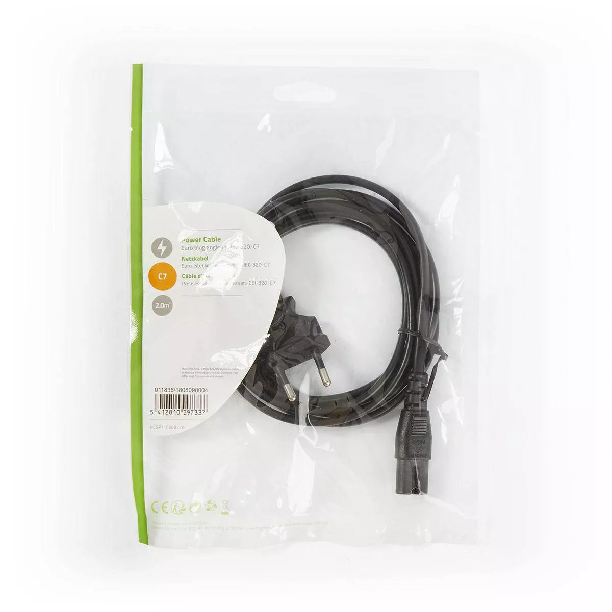 Cablu de alimentare | Euro Plug Angle – IEC-320-C7 | 2,0 m | Negru.