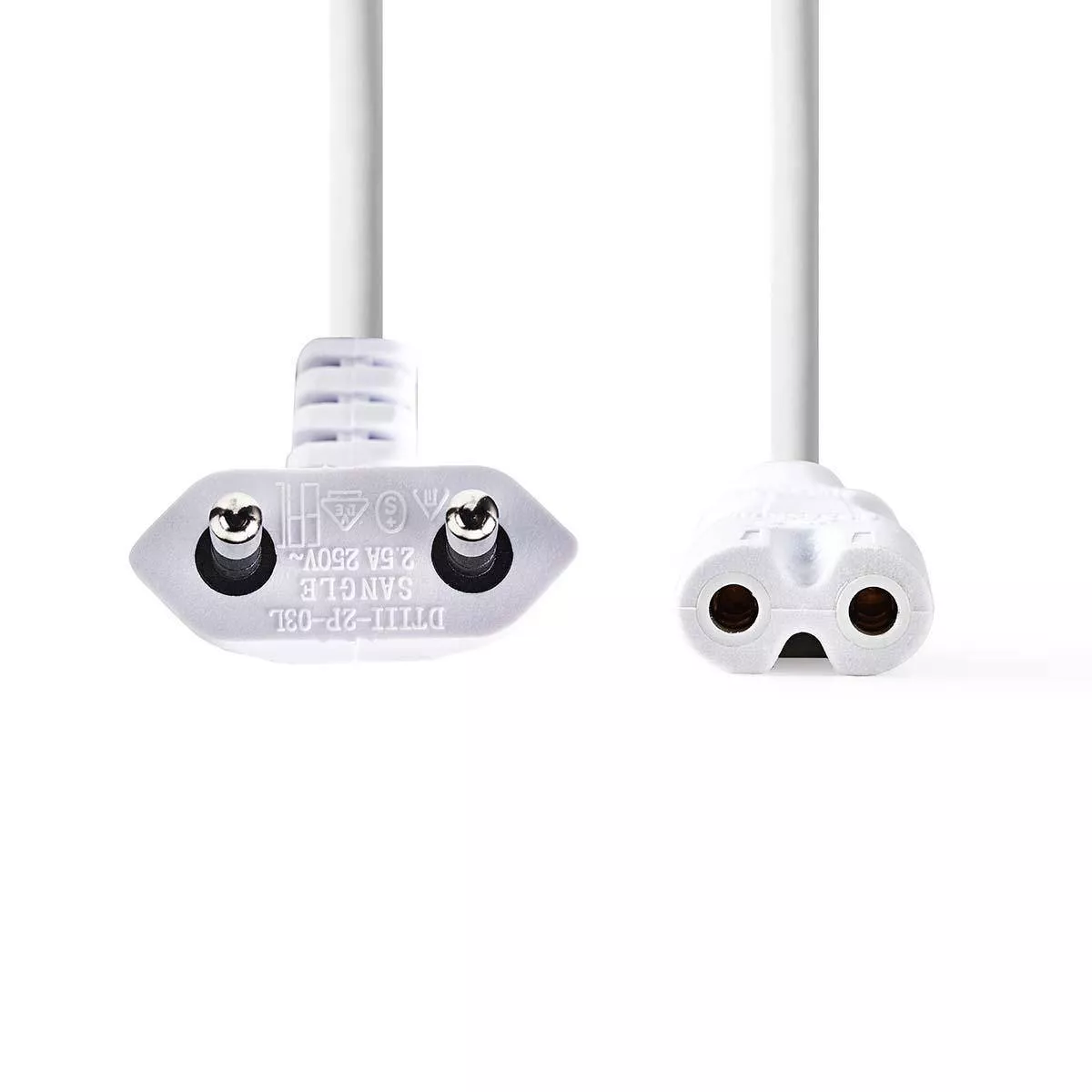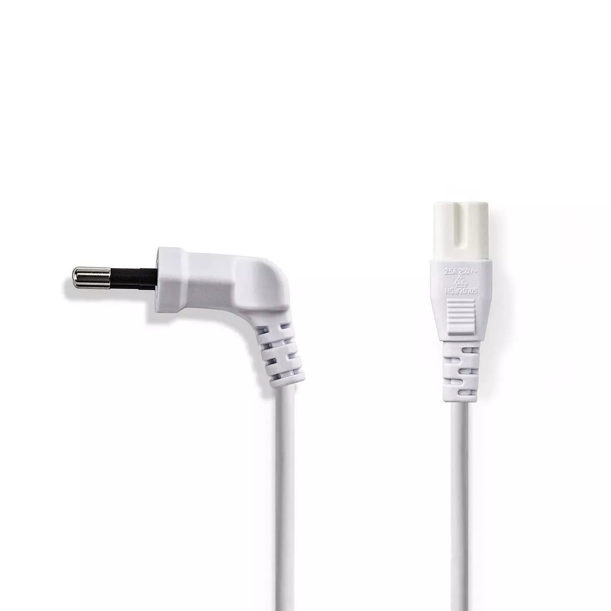 Cablu de alimentare | Euro Plug Angle – IEC-320-C7 | 2,0 m | alb.