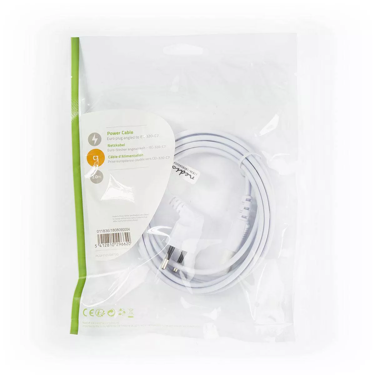 Cablu alimentare Euro tata cotit – 2 Pini IEC-320-C7 2m alb Nedis