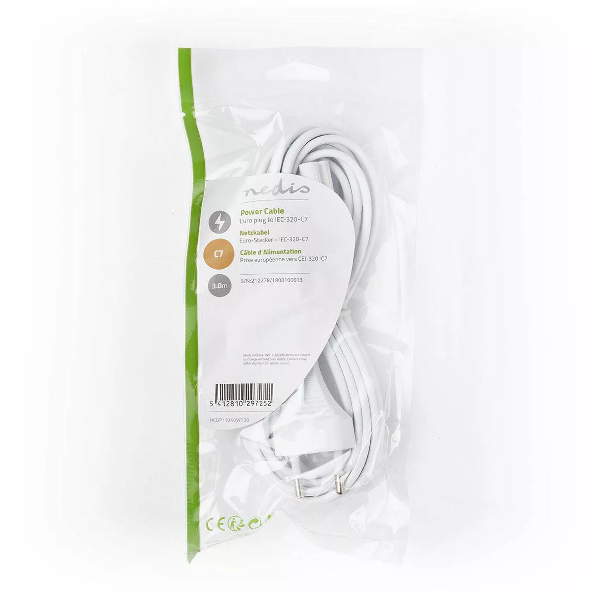 Cablu alimentare Euro tata – IEC-320-C7 3m alb Nedis.