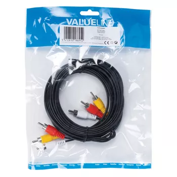 Cablu audio 3x RCA tata – 3x RCA tata 5m negru Valueline.