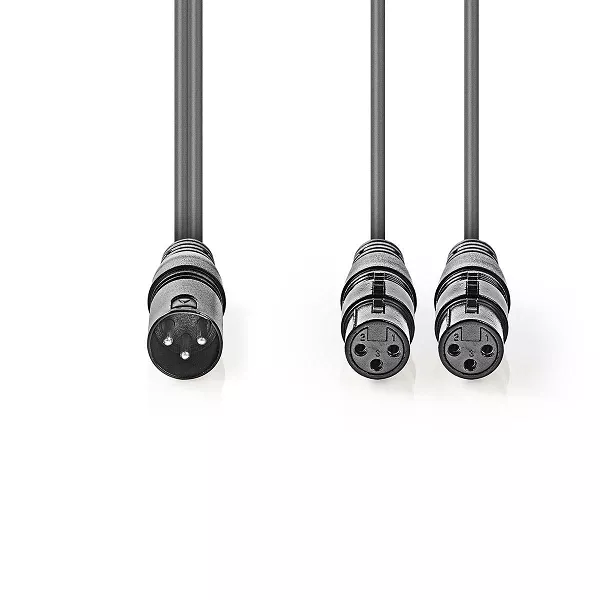 Cablu audio balansat stereo Nedis XLR 3-pini tata – 2x XLR 3-pini mama 1.5m gri