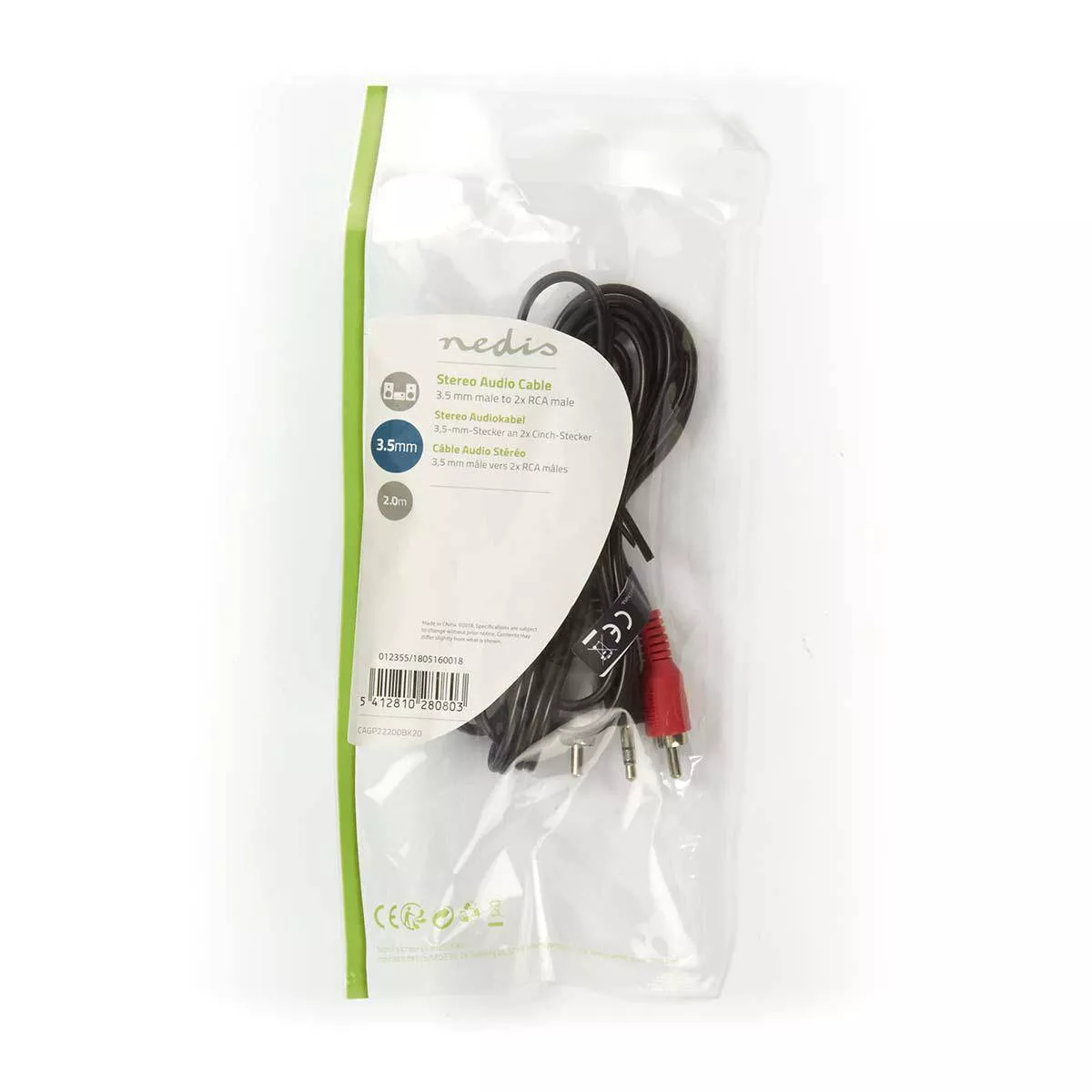Cablu audio Jack Stereo Nedis 3.5 mm tata – 2x RCA tata 2m negru.