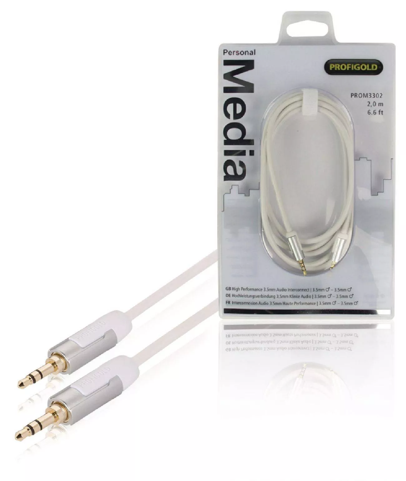 Cablu alb audio stereo JACK 3.5 mm tata – tata 2m cupru OFC Profigold.