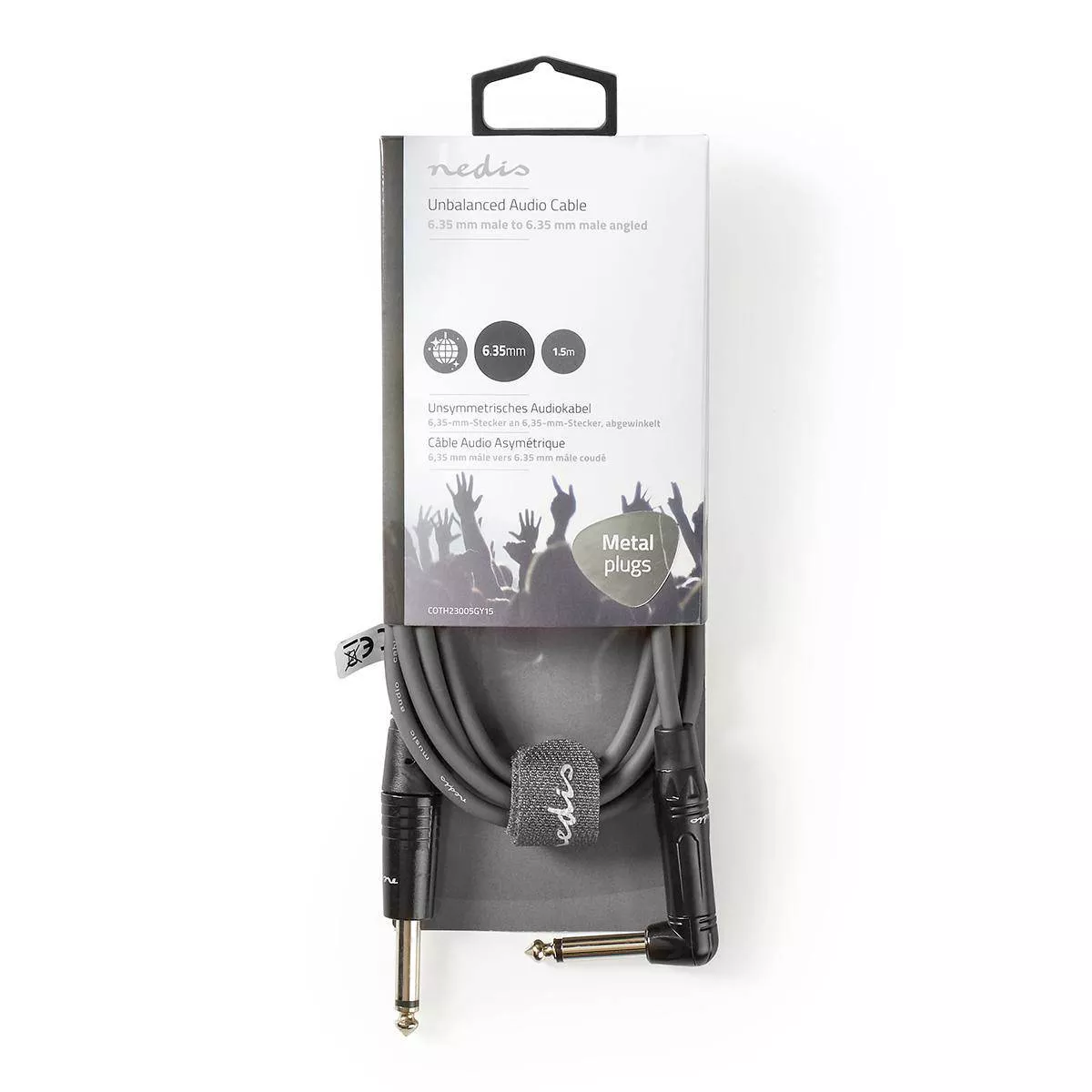 Cablu audio stereo Jack 6.35 mm tata – 6.35 mm tata cotit 1.5m gri Nedis.