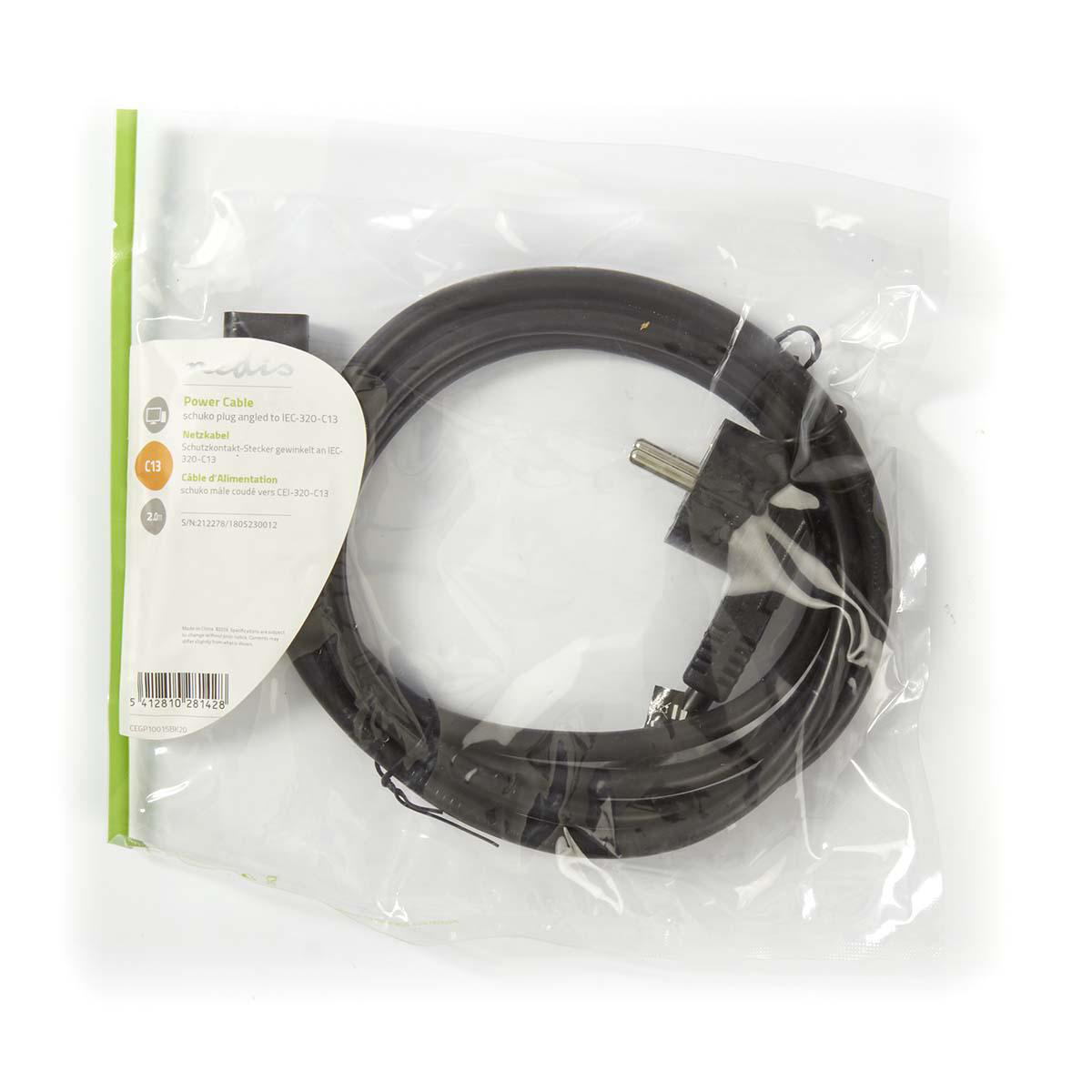 Cablu de alimentare Fișă cu contact de pământ tată | IEC-320-C13 | Înclinat | Drept | Placat cu nichel | 2,00 m | rotund | PVC | Negru