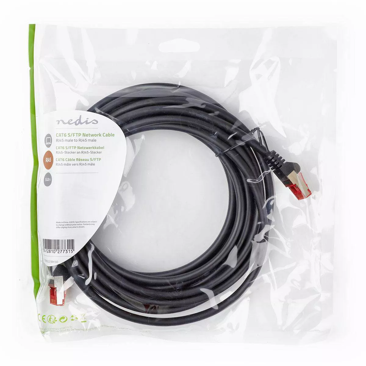 Cablu de retea Cat6 SFTP RJ45 tata – RJ45 tata 5m negru Nedis.