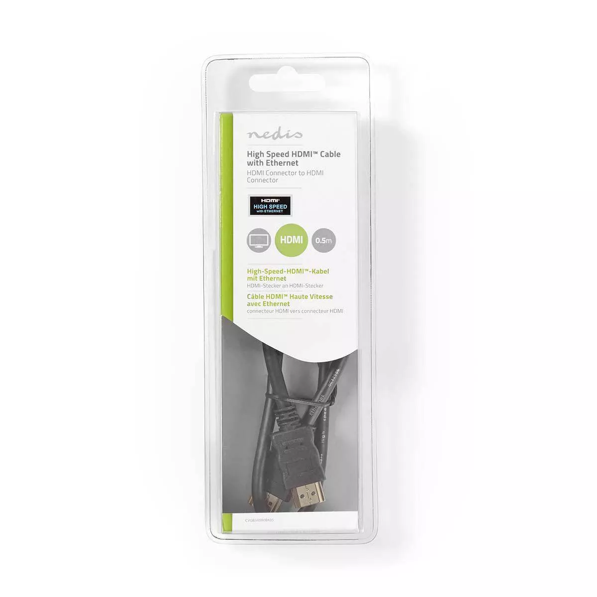 Cablu HDMI ™ de mare viteză cu Ethernet | Conector HDMI – Conector HDMI | 0,5 m | Negru.
