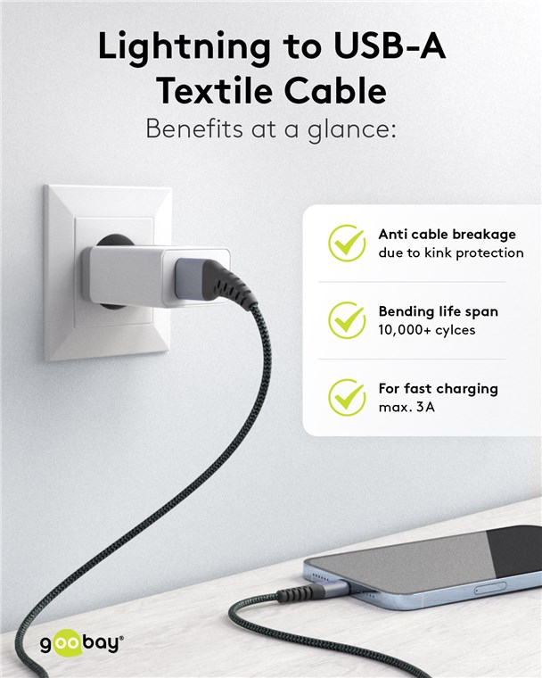Cablul de încărcare Goobay Lightning pentru încărcare super-rapidă cu maximum 3 A