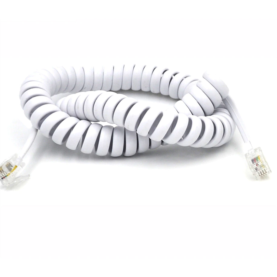 Cablu receptor spiralat 4m RJ9 (4P4C) 7/0.10 CCS alb Well
