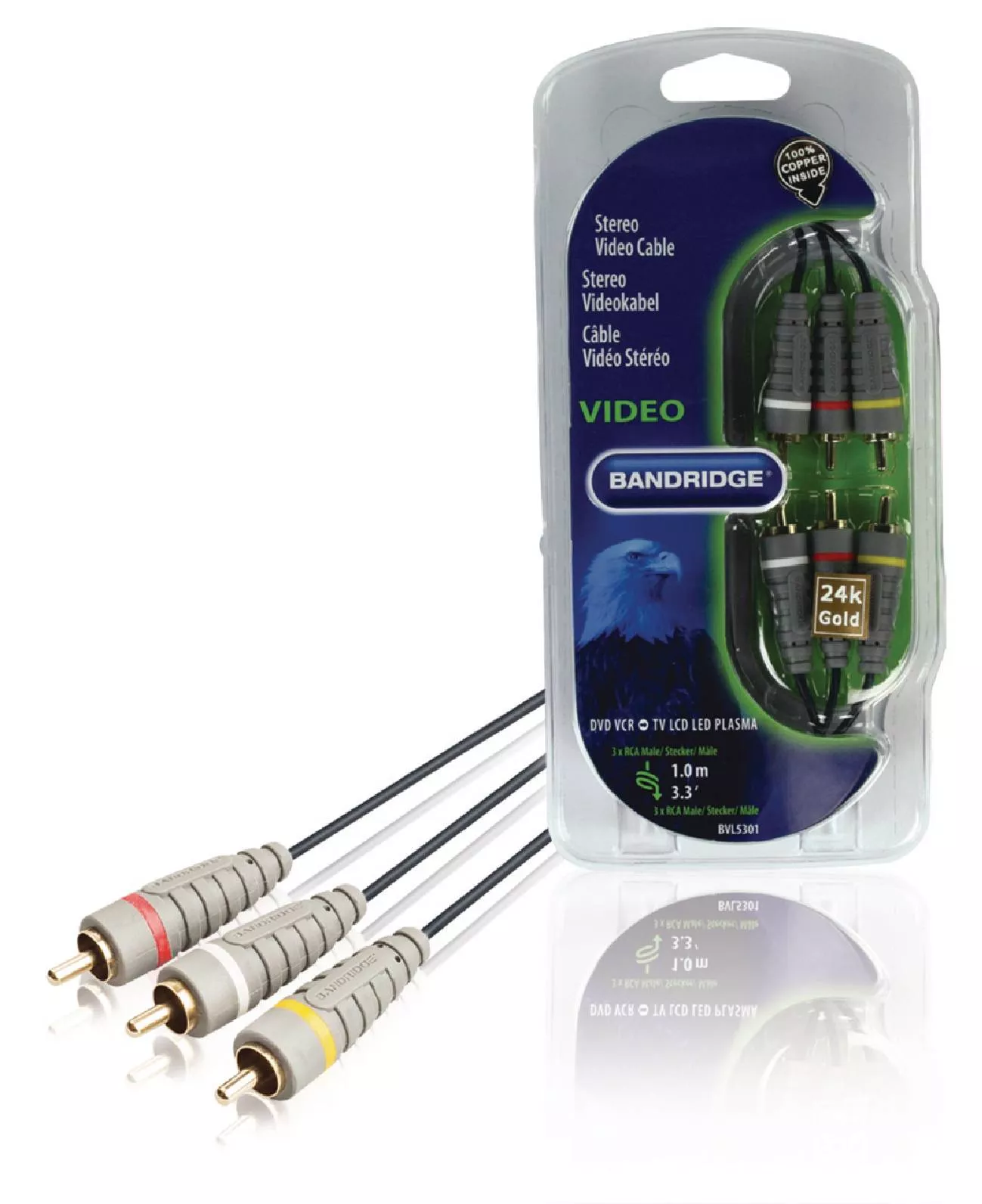 Stereo Audio-Video cablu 3x RCA – 3x RCA tata-tata rosu alb galben 1m, marca BANDRIDGE.