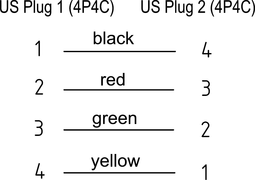 Conexiune 2, tip RJ10 tată (4P4C)