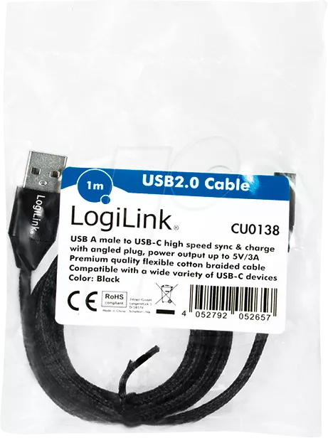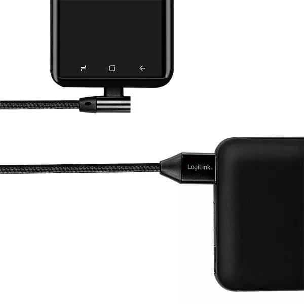 Cablu USB 2.0 A mufa – USB Type C mufa in unghi 1m negru LOGILINK CU0138