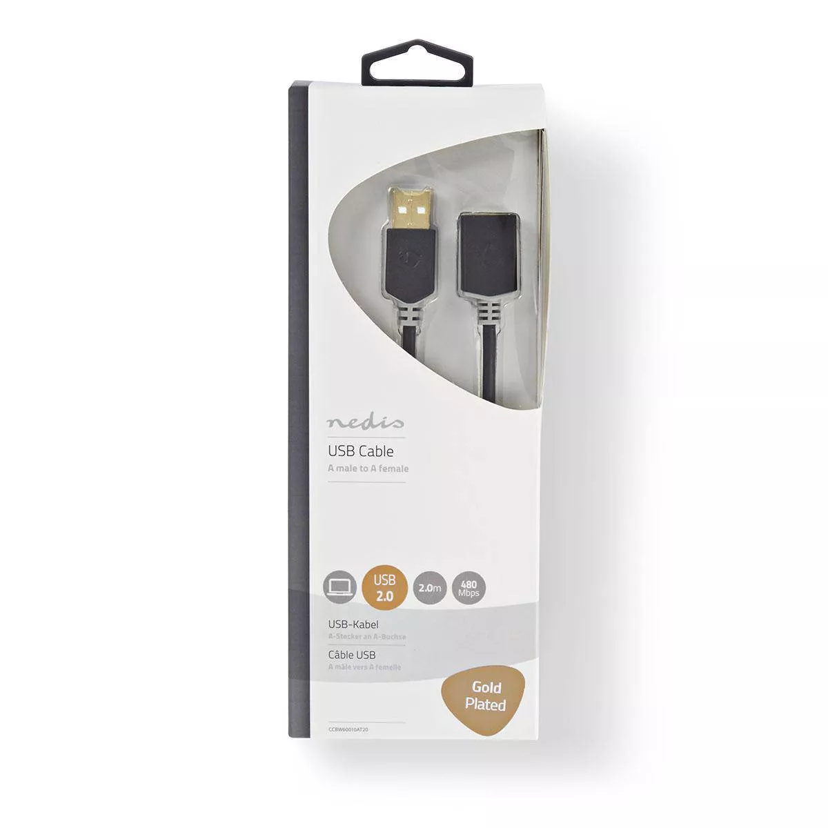 Cablu USB 2.0 A tata – USB A mama 2m negru Nedis.