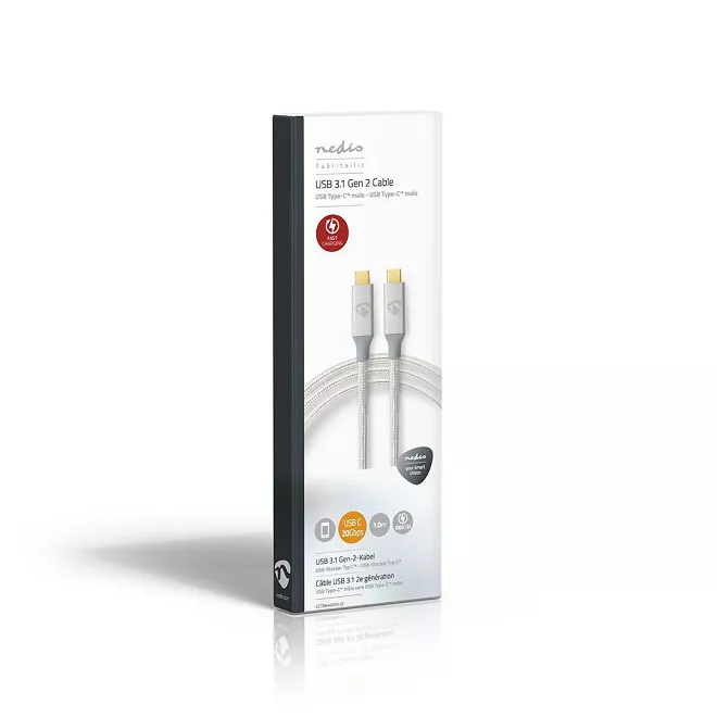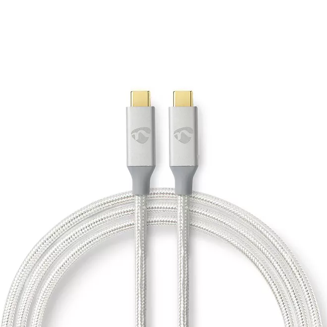 Cablu USB 3.2 Gen2x2 TYPE C tata-tata 20Gbps 1m 100W 5A cupru OFC argintiu Nedis.