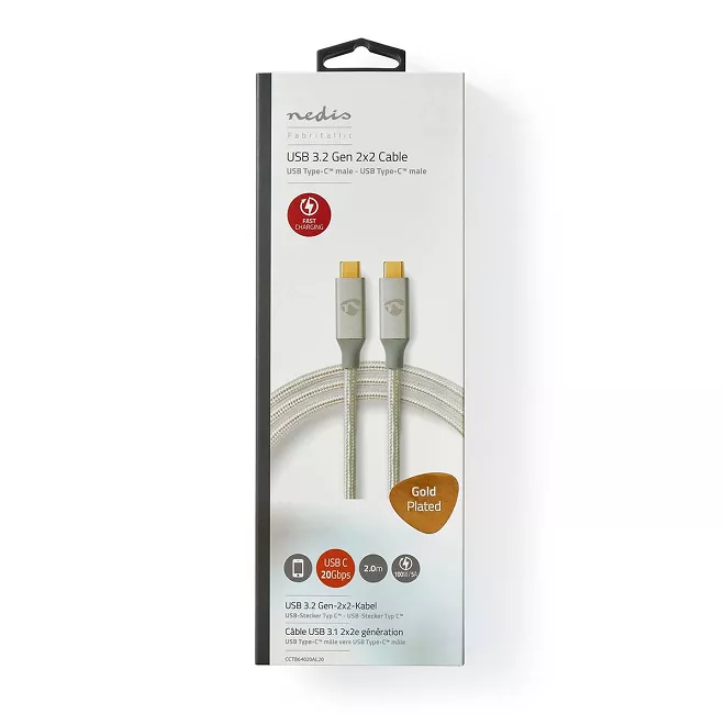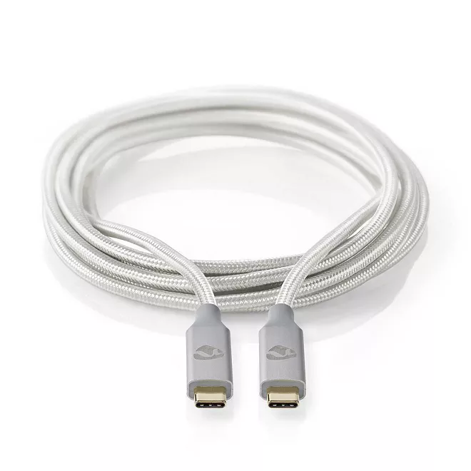 Cablu USB 3.2 Gen2x2 TYPE C tata-tata 2m 20Gbps 100W 5A cupru OFC argintiu Nedis.