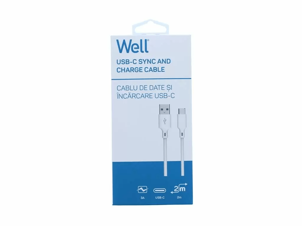 Cablu USB2.0 A tata – USB type C 2m 3A alb Well.