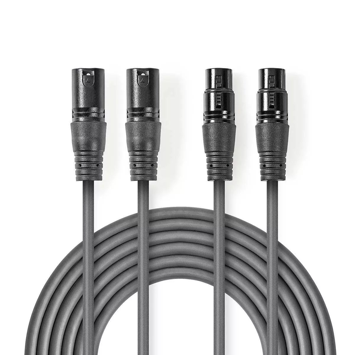Cablu XLR Nedis XLR 2x 3-Pin tata – 2x XLR 3-Pin mama, 5m, gri.