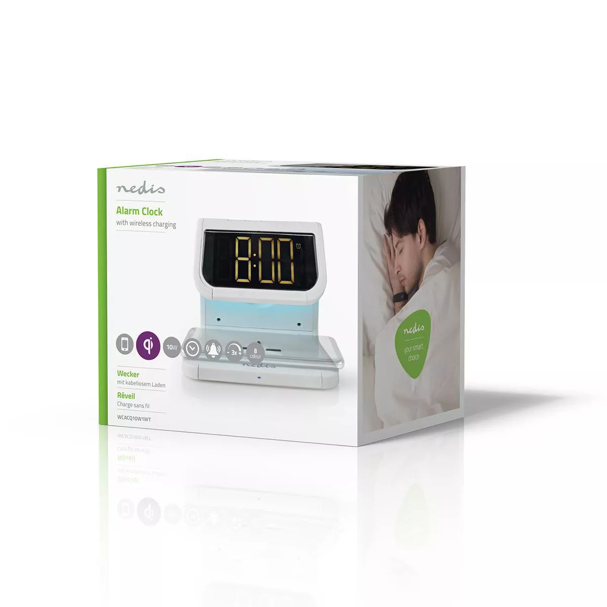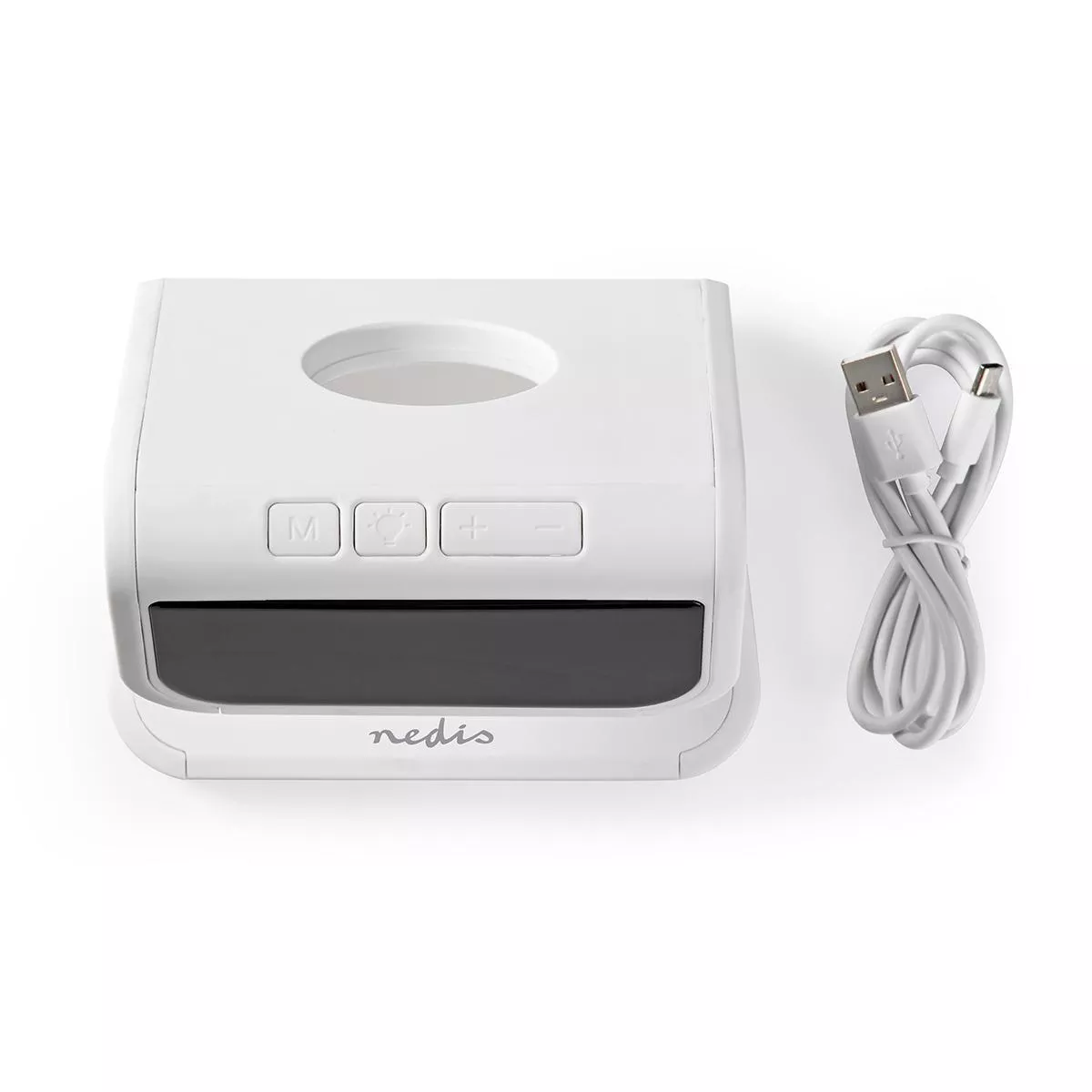 Acest ceas cu alarmă Nedis® 3-în-1 conține trei funcții: încărcare wireless Qi, un ceas cu LED-uri cu funcție de alarmă și lumină de noapte.