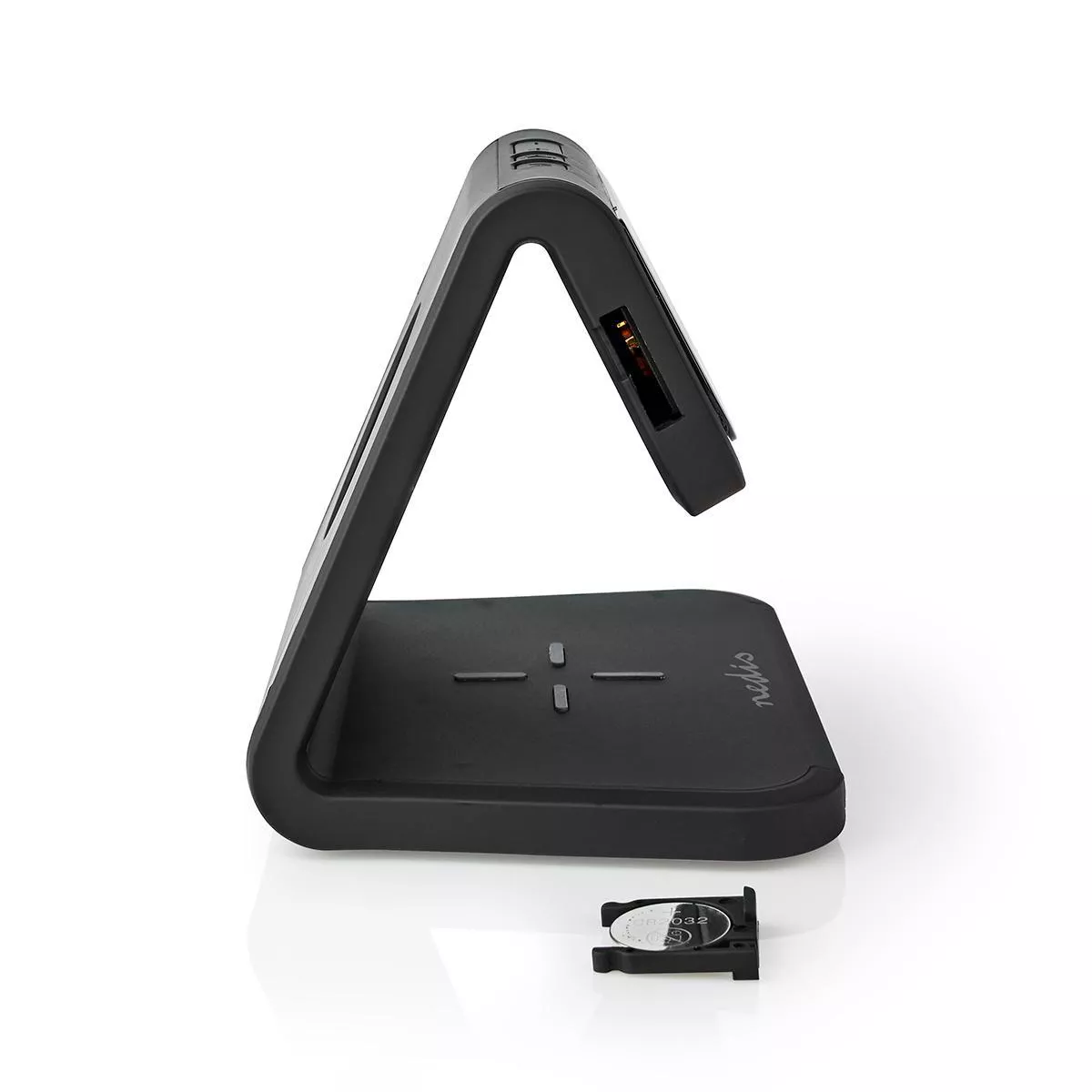 Acest ceas cu alarmă Nedis® 3-în-1 conține trei funcții: încărcare wireless Qi, un ceas cu LED-uri cu funcție de alarmă și lumină de noapte.