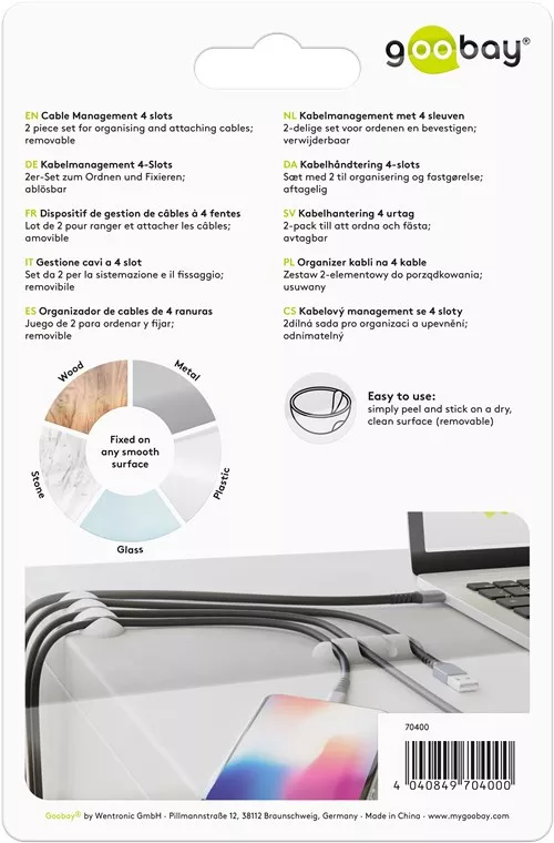 Cleme pentru gestionarea cablurilor cu 4 sloturi Goobay set 2buc alb