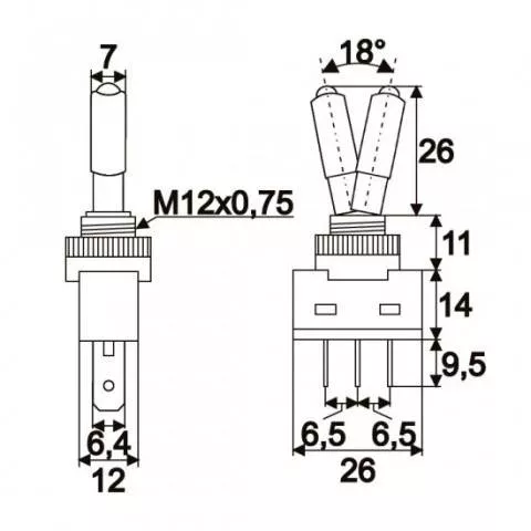 Comutator cu brat 1 circuit 20A 12V OFF-ON cu LED albastru.
