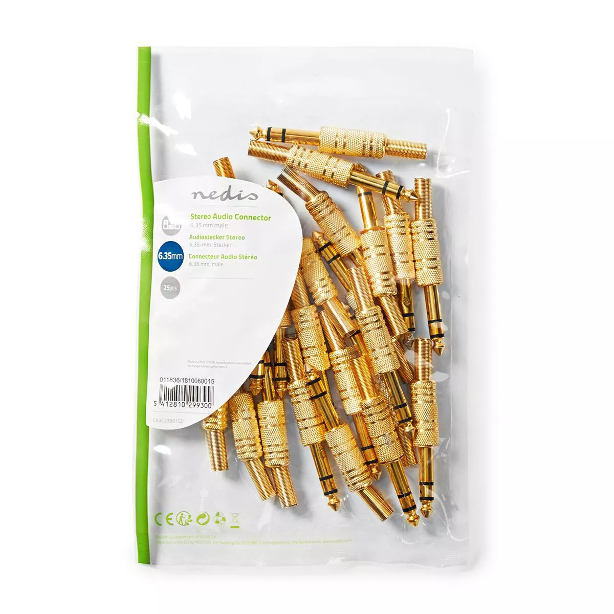 Conector audio Jack Stereo Nedis 6.35 mm tata 1 buc auriu.
