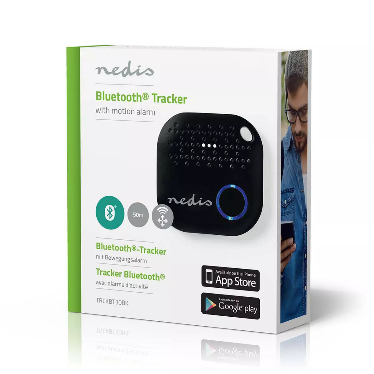 Dispozitiv de urmarire cu Bluetooth Nedis, functioneaza pana la 50m, detecteaza miscarea, negru.