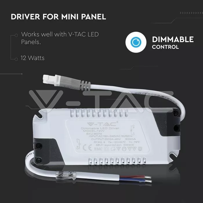 Driver pentru panou LED 12W 24-45VDC 300mA cu control variatie intensitate dimmer V-TAC