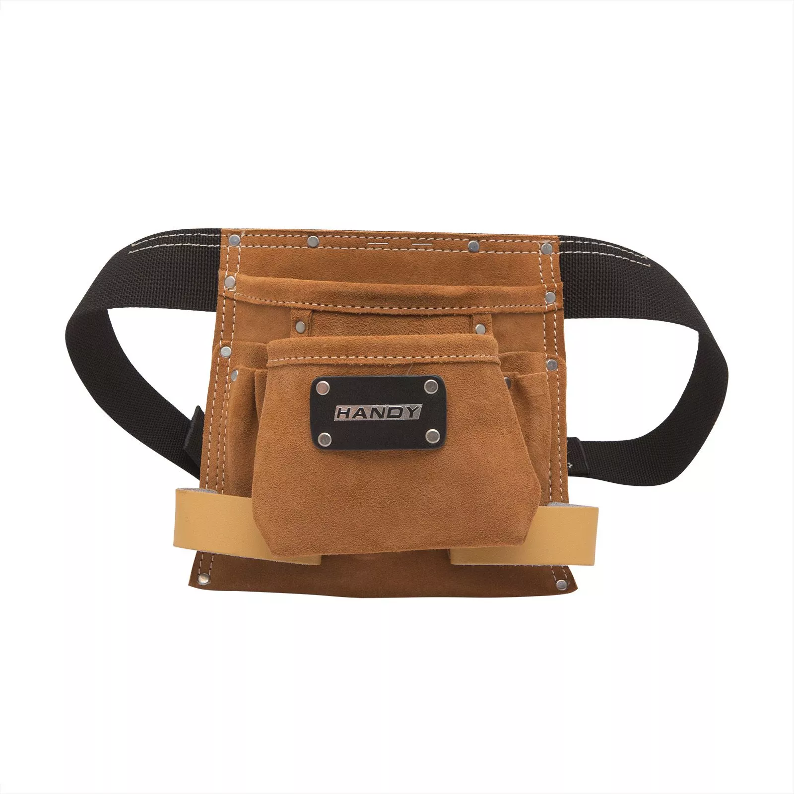 HANDY Geantă din piele intoarsă, cu 2 buzunare mari, 2 agățători, cu centură și 6 buzunare mici.