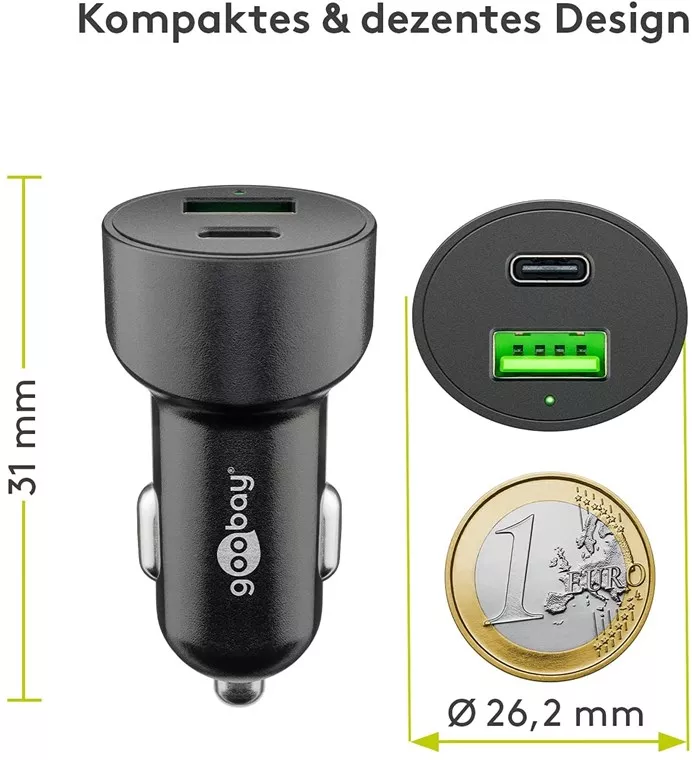 Incarcator 12-24V auto rapid dublu USB si USB type C PD 3A 48W Goobay.