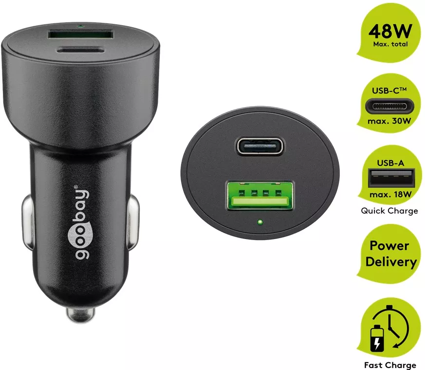 Incarcator 12-24V auto rapid dublu USB si USB type C PD 3A 48W Goobay