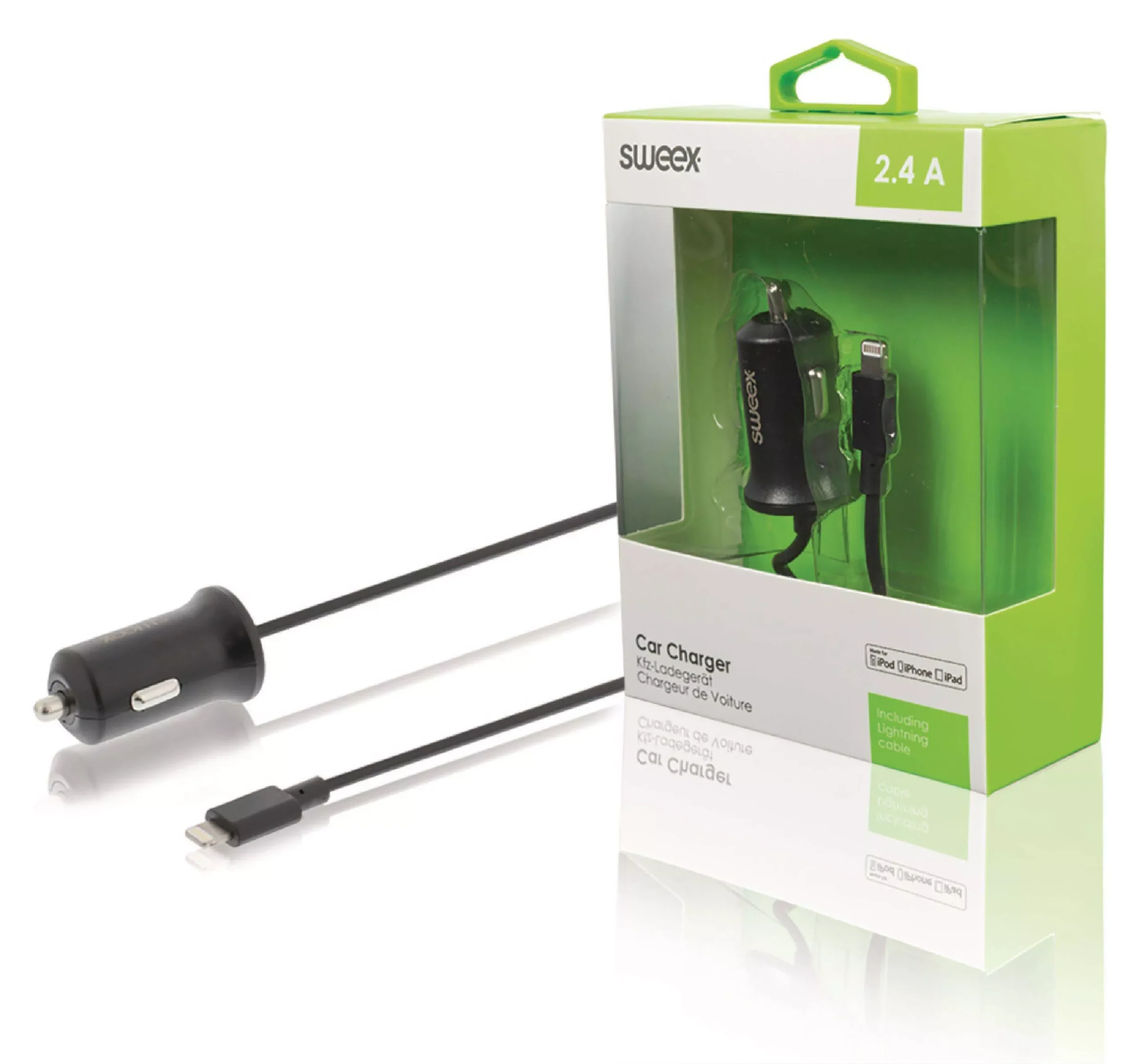 Incarcator auto 2.4A Apple Lightning negru Sweex