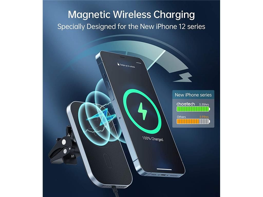 Incarcatorul auto Magsafe T200-F de la Choetech este special conceput pentru seria iPhone 12.