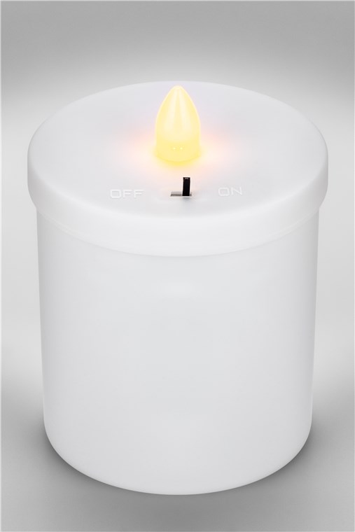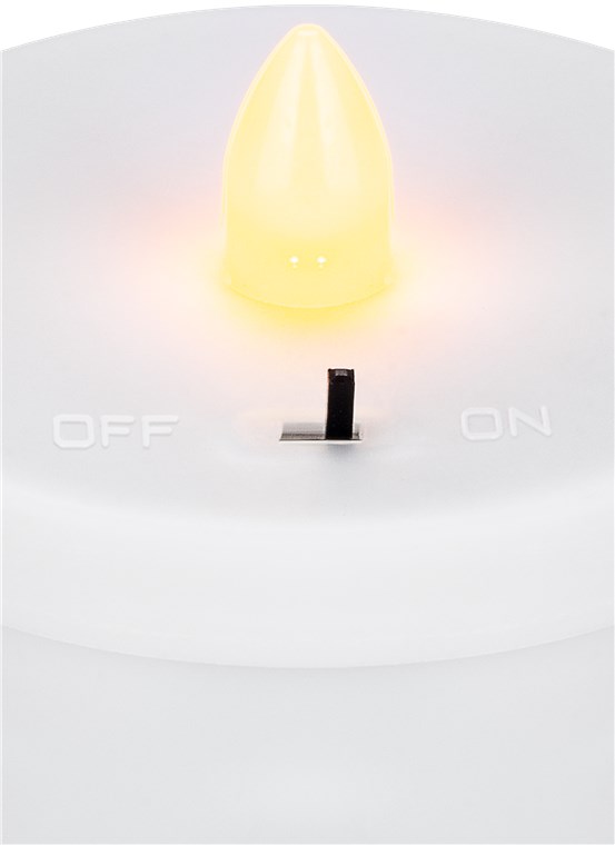 Comutator On/Off plasat discret lângă LED-ul din interiorul lumânării mormântului, accesibil prin capacul detașabil.