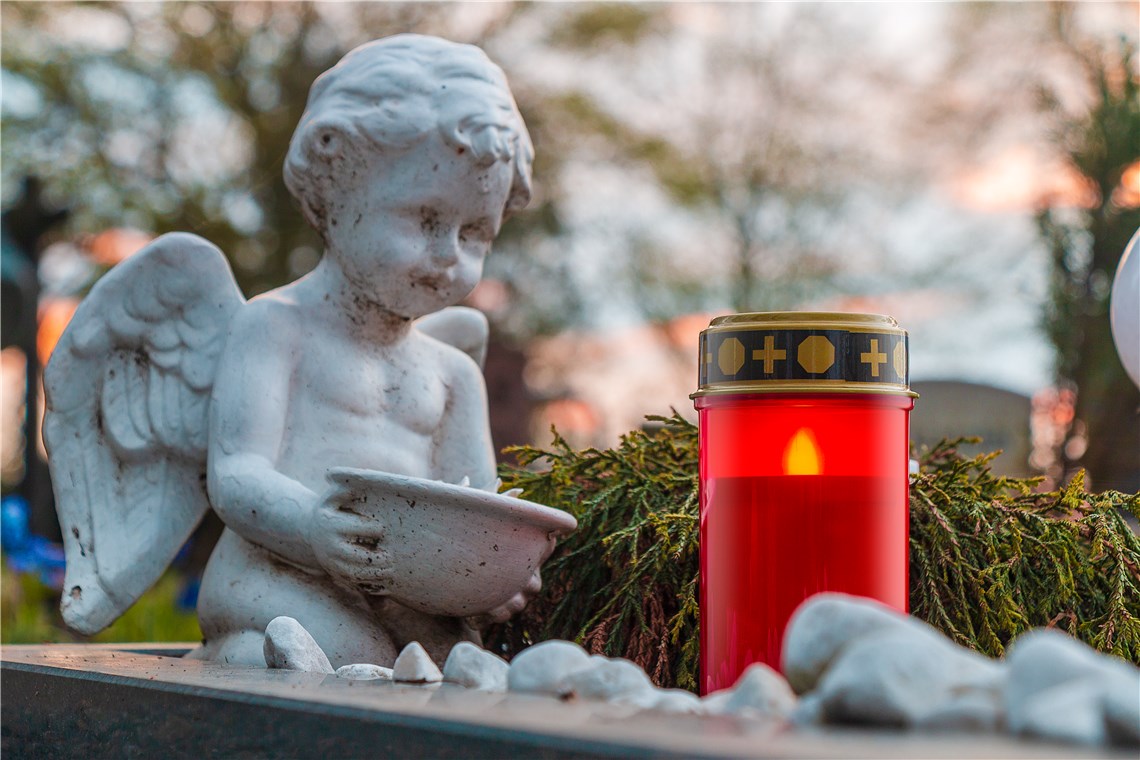 Iluminat elegant pentru mormânt, care, spre deosebire de lumânările reale, nu necesită reînnoirea zilnică a luminii.