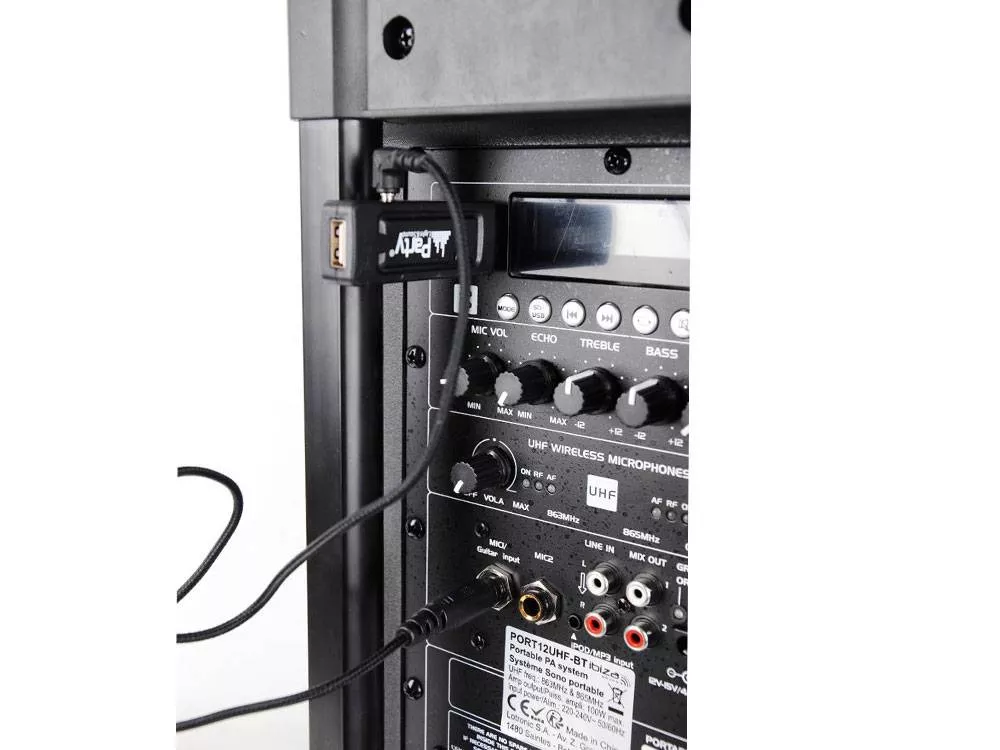 Receptorul este alimentat din portul USB si este conectat la intrarea echipamentului audio printr-un cablu cu mafa jack (adaptor jack 3.5 mm / 6.3 mm inclus).