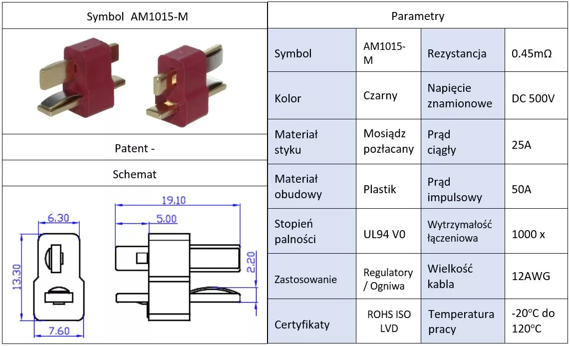 Mufa alimentare DC AM-1015 tata PIN 2 pe cablu lipite 25A AMASS AM1015-M.