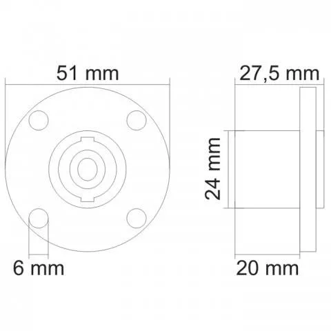 Mufa speakon mama cu 4 poli, 51 mm, Montabil, Executie din plastic.