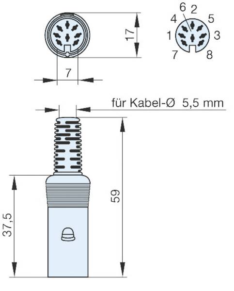 Mufa DIN 8 pini mama pe cablu cu lipire HIRSCHMANN 930348517 MAK80 S
