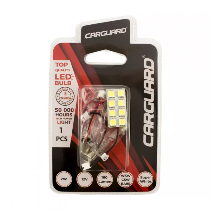 Placa LED SMD 20x60 mm 12V SMD5050 3W lumina alba 240lm inclus adaptoare W5W C5W BA9S CarGuard
